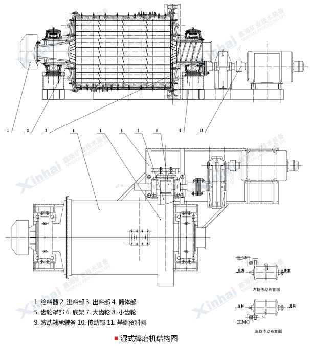 【產品改進】:鑫海濕式棒磨機有溢流型棒磨機、端頭周邊排礦棒磨機、中心周邊排礦棒磨機三種類型的棒磨機,可以滿足客戶的不同需求。