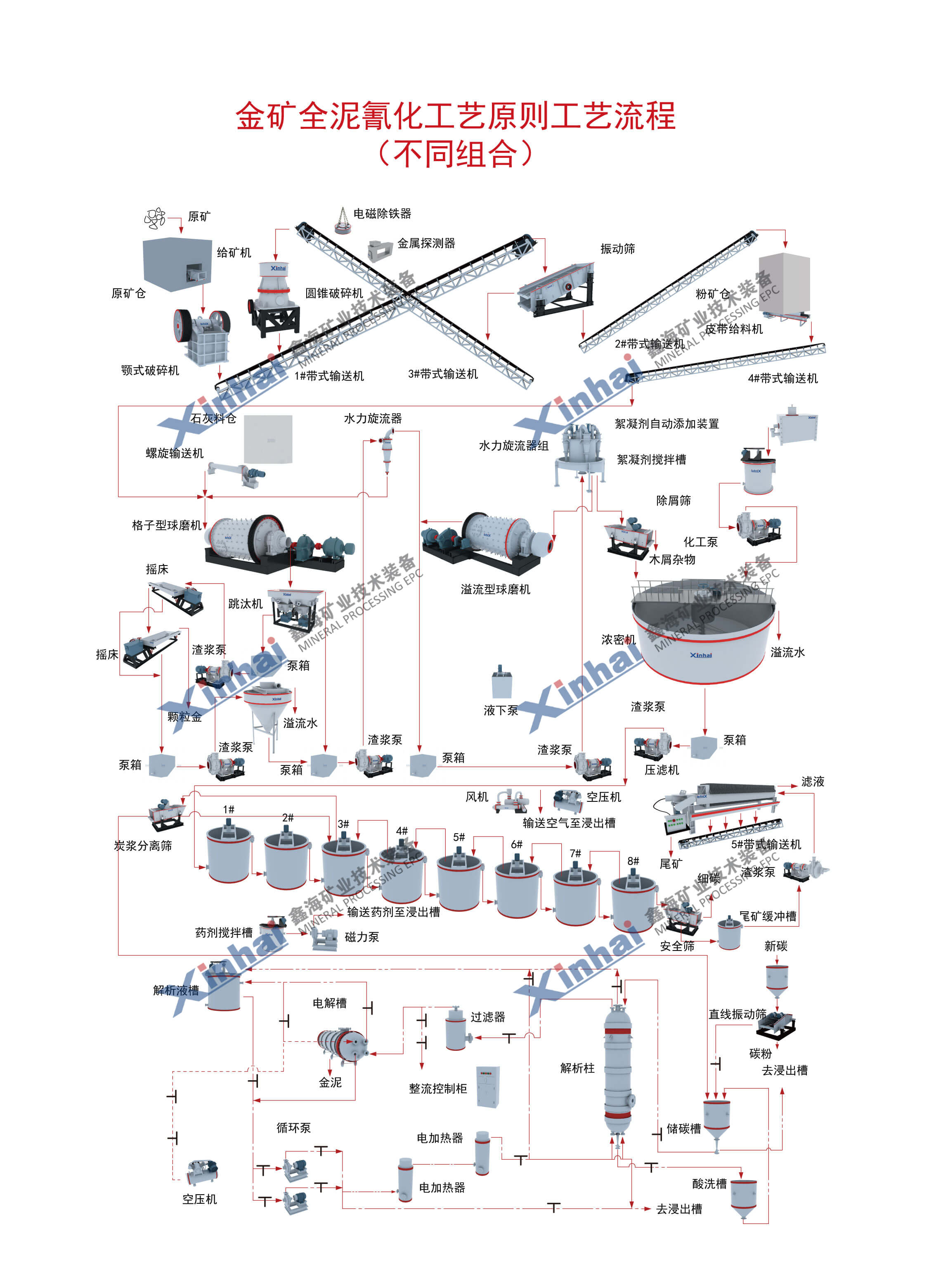 【工藝介紹】:全泥氰化工藝,是一種向礦漿中加入活性炭并同時進行浸出和吸附金的工藝流程。包括:浸出礦漿準備、浸出和吸附、脫金炭再循環、礦漿攪拌、載金炭解吸幾個階段。