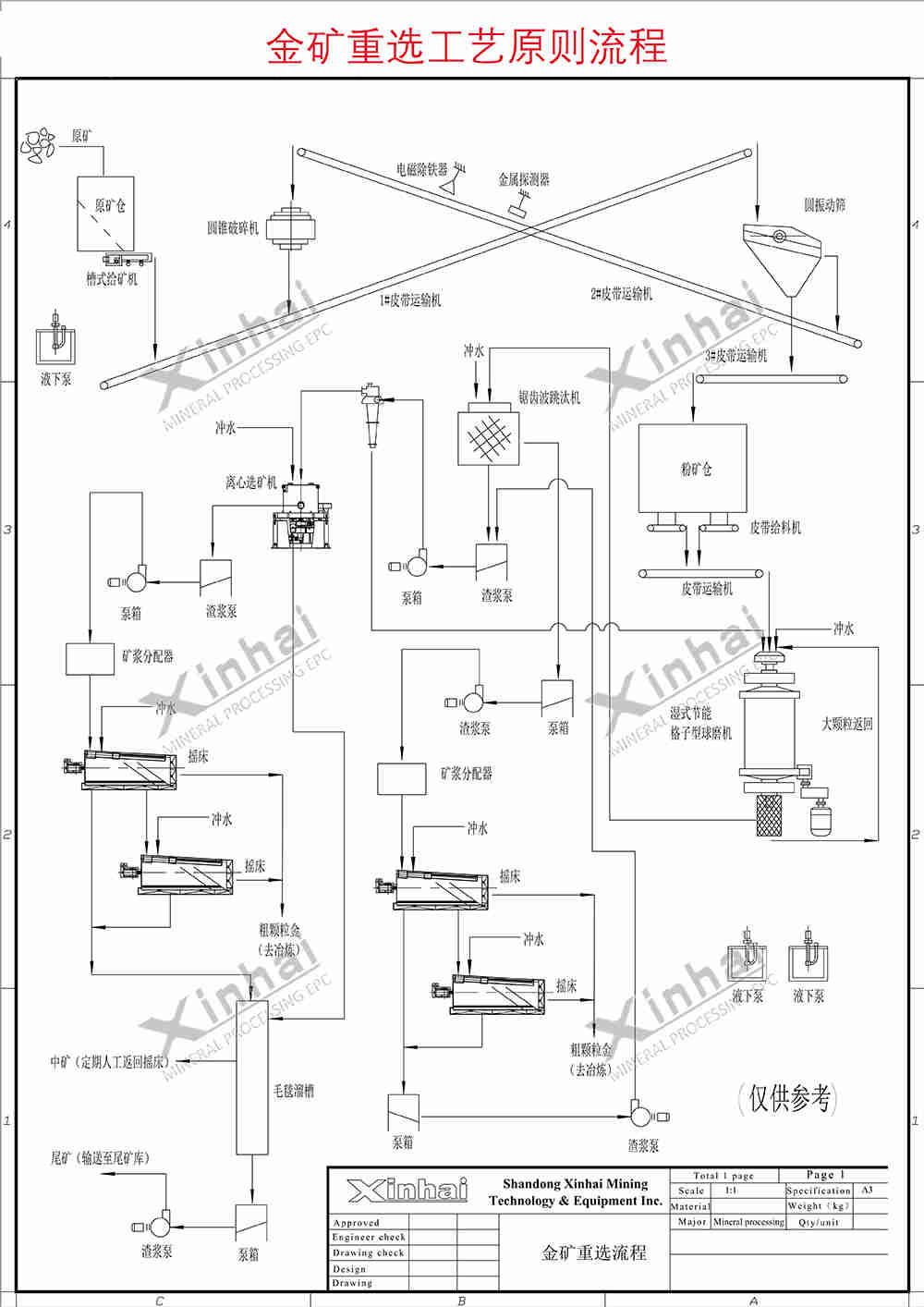 【工藝介紹】根據(jù)礦物相對(duì)密度的差異來分選金礦。高效、節(jié)能、環(huán)保、經(jīng)濟(jì);工藝設(shè)備簡(jiǎn)單,成本低。